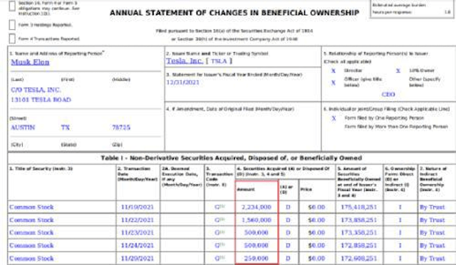 去年11月19日至11月29日,特斯拉首席执行官埃隆·马斯克向一家慈善机构捐赠了特斯拉5044000股股票。该慈善机构于2月14日向美国证券交易委员会提交了实际所有权变更文件,以曝光此行动。
