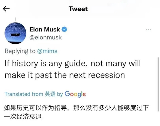 到2022年才刚刚开始的时候,特斯拉CEO马斯克就发布了一条推特 开始预言2022世界经济 。