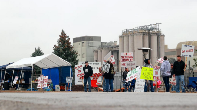 10月7日,美国密歇根州罢工的家乐氏公司员工(图自美媒)