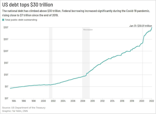 据报道,美国国会授权的许多联邦疫情援助计划已经过期,留给美国人的财政援助比疫情早期要少。与此同时,美联储已发出信号将提高短期利率以遏制通货膨胀。据悉,美国通货膨胀正处于近40年来的最高水平。美国国债总额首破30万亿美元,专家:政府不负责任的结果