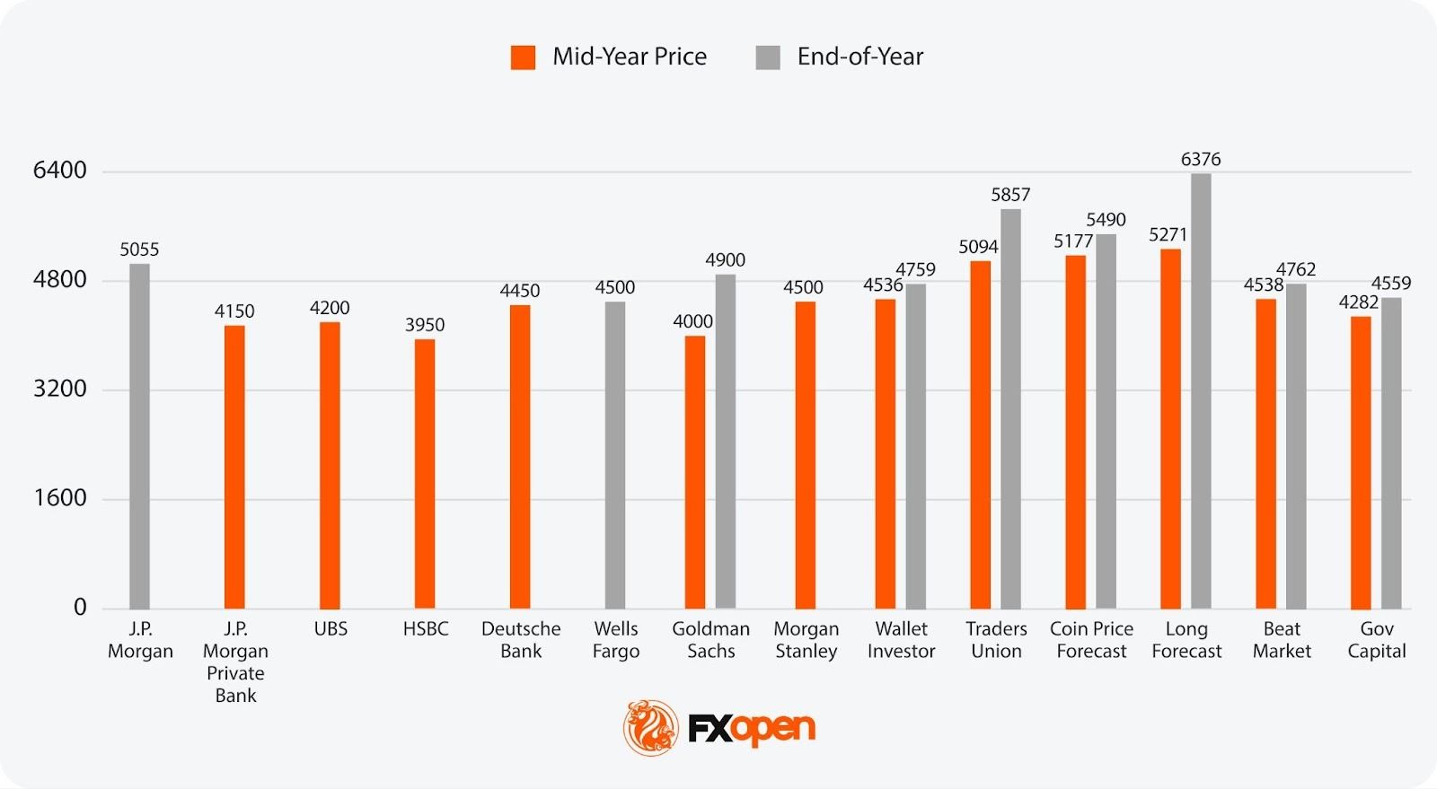 预测范围在3950美元至6376美元之间,表明最终结果可能存在较大差异。预测中点接近4500美元,市场情绪主要受降息、经济增长放缓和持续去美元化等因素驱动。